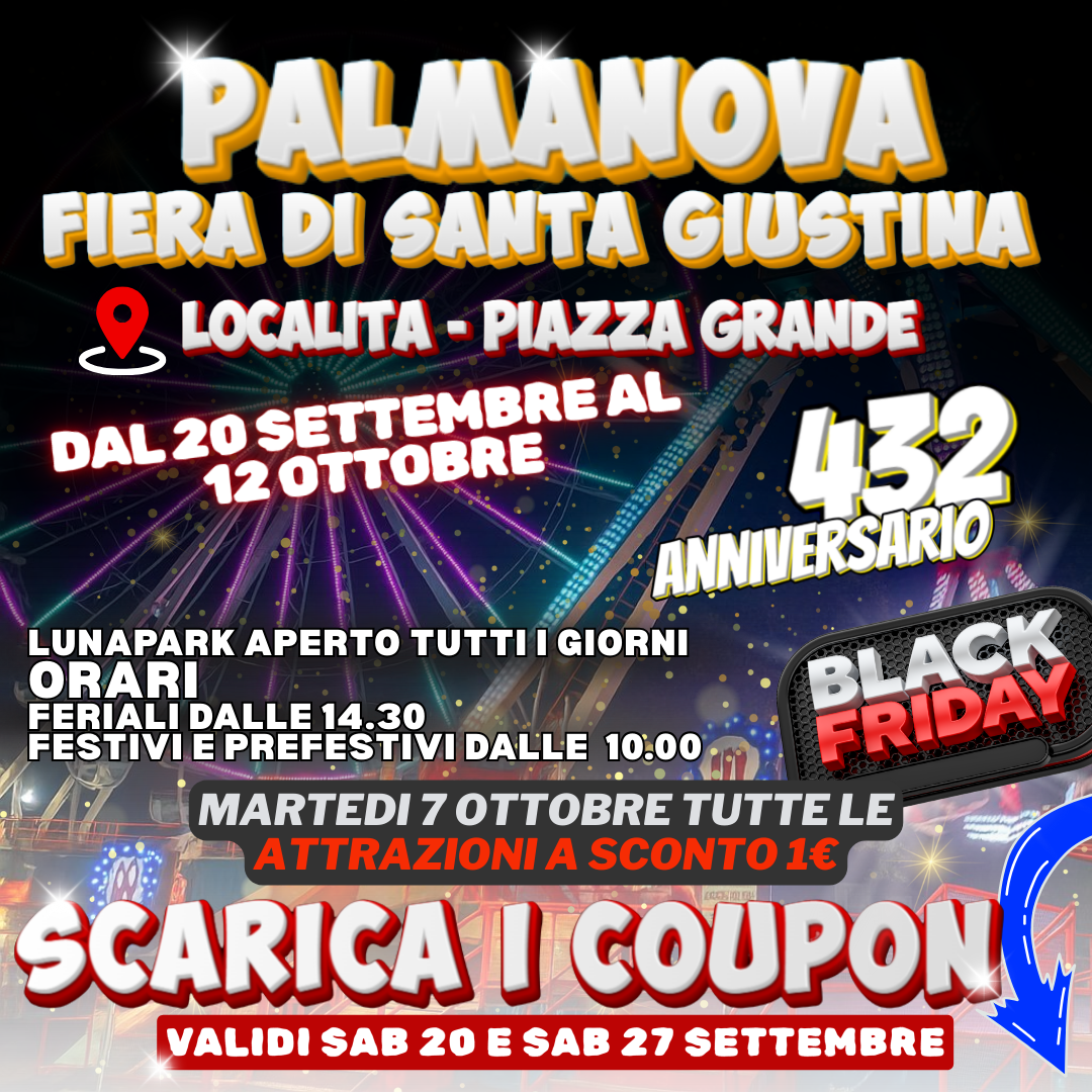 For the first time in Palmanova, the Black Friday concept meets the Luna Park: special days with amazing prices so everyone can enjoy the fun.
